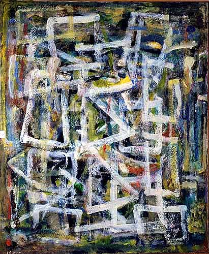 Movement in Space 1954 Oil on Canvas 36 x 45, Wooden Strip Frame