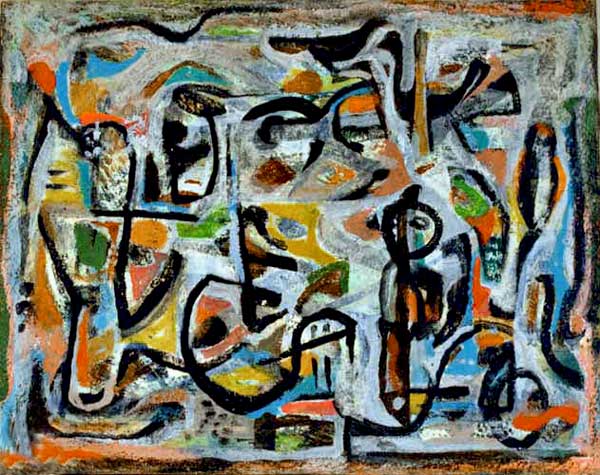 Abstraction with Linear Design oil and acrylic on canvas 15 1/2 x 20, On Stretcher